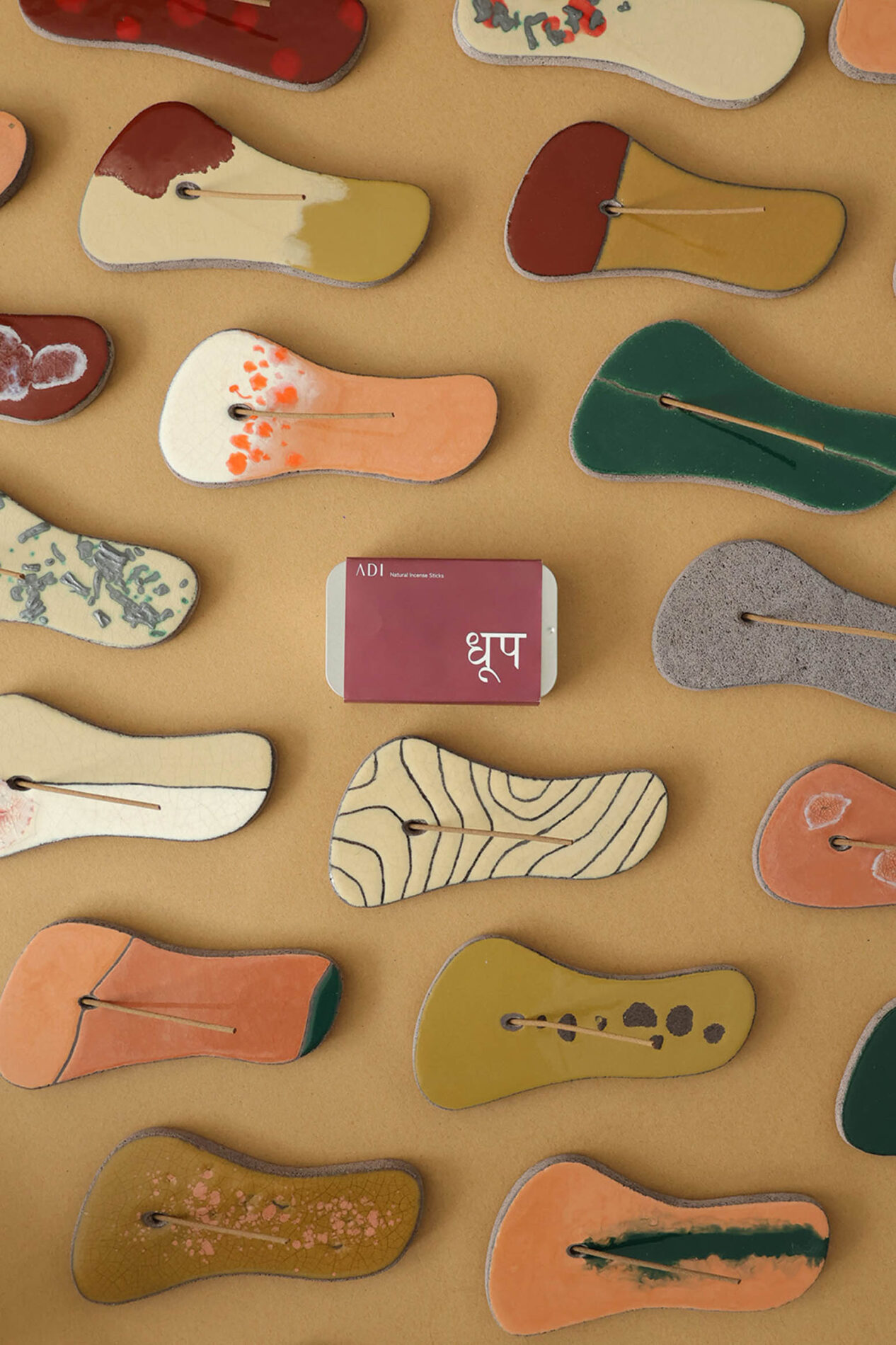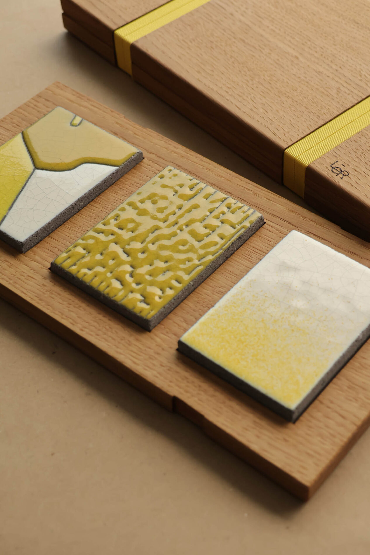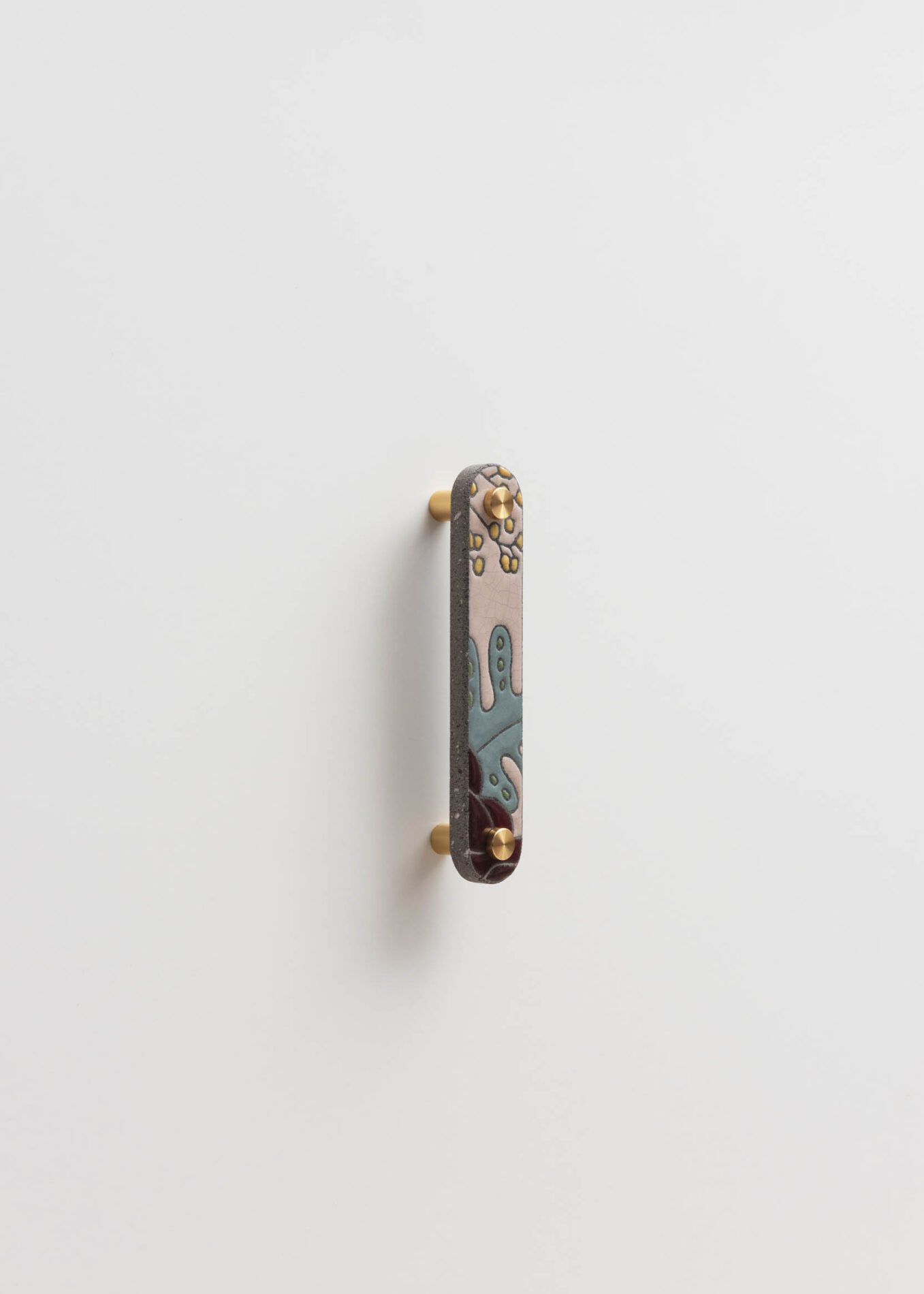 de l’émail sur lave pour offrir une vision douce et pointue de l’artisanat d’art contemporain, où la vibration de la couleur