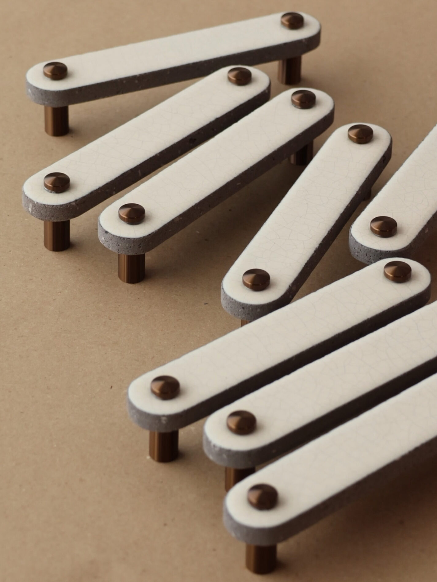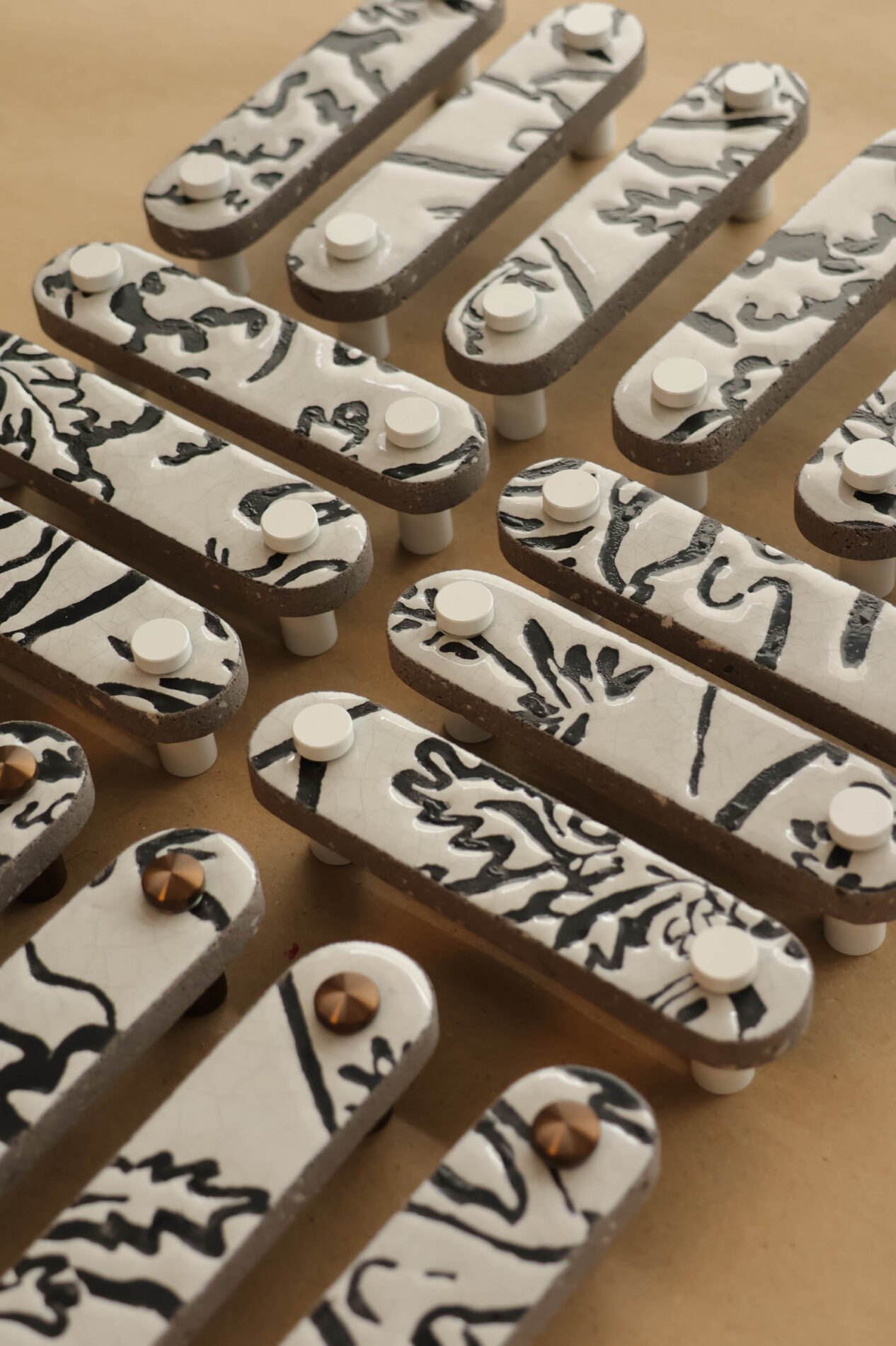 par la petite série d’objets. Leurs poignées de meubles, pensées comme