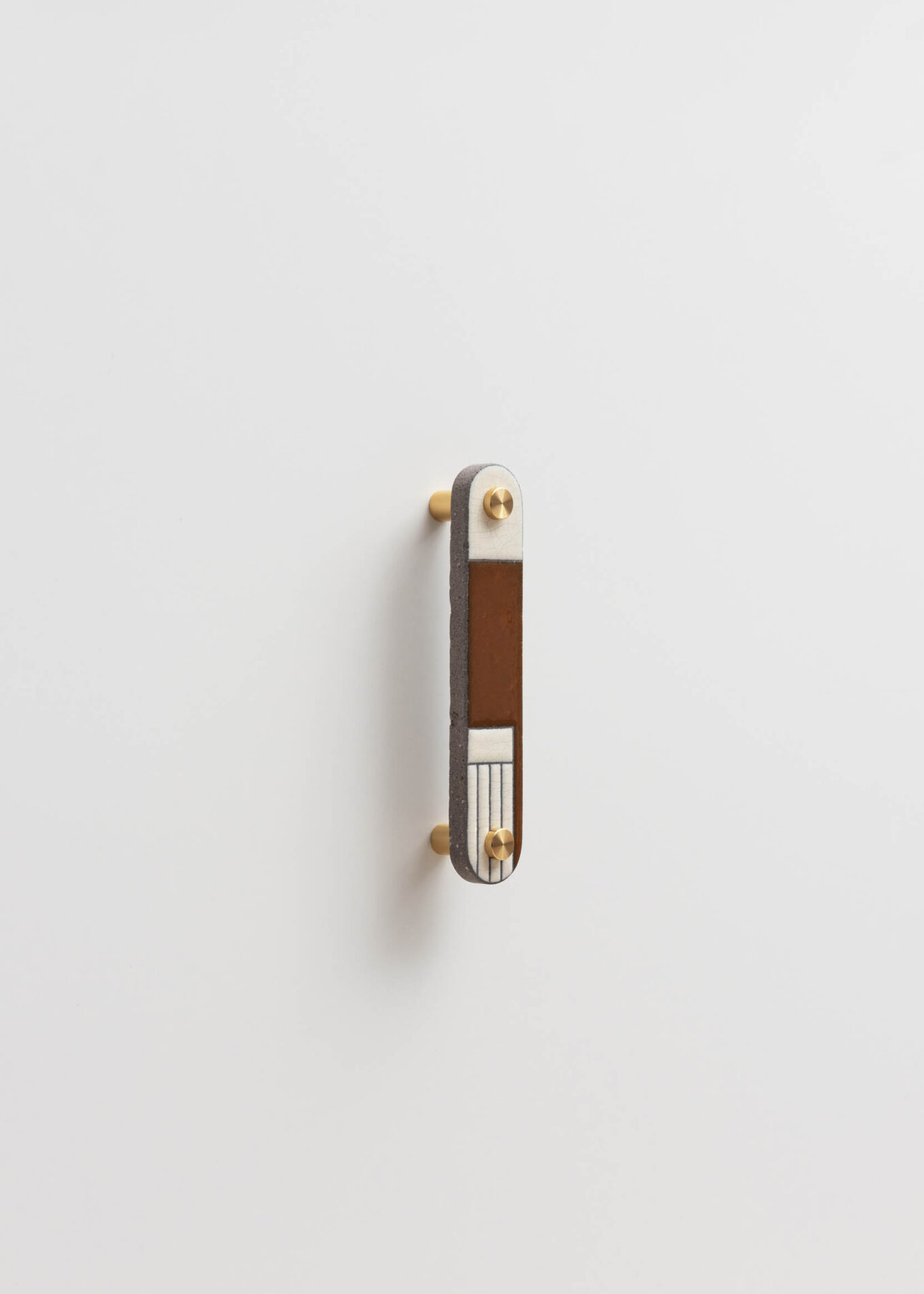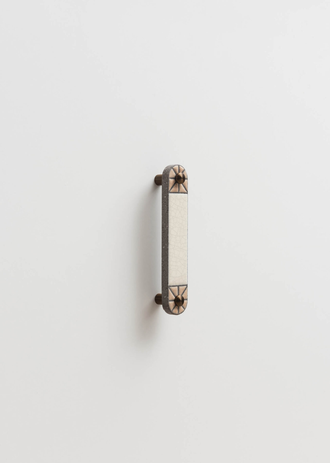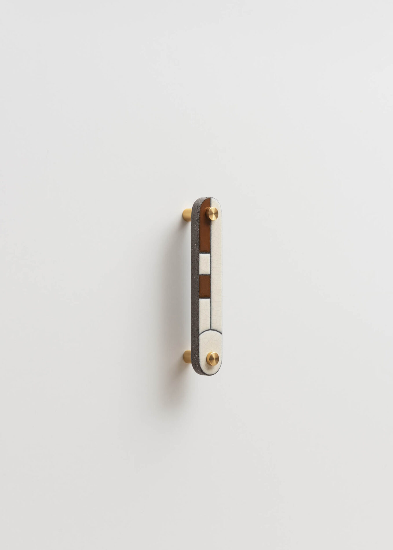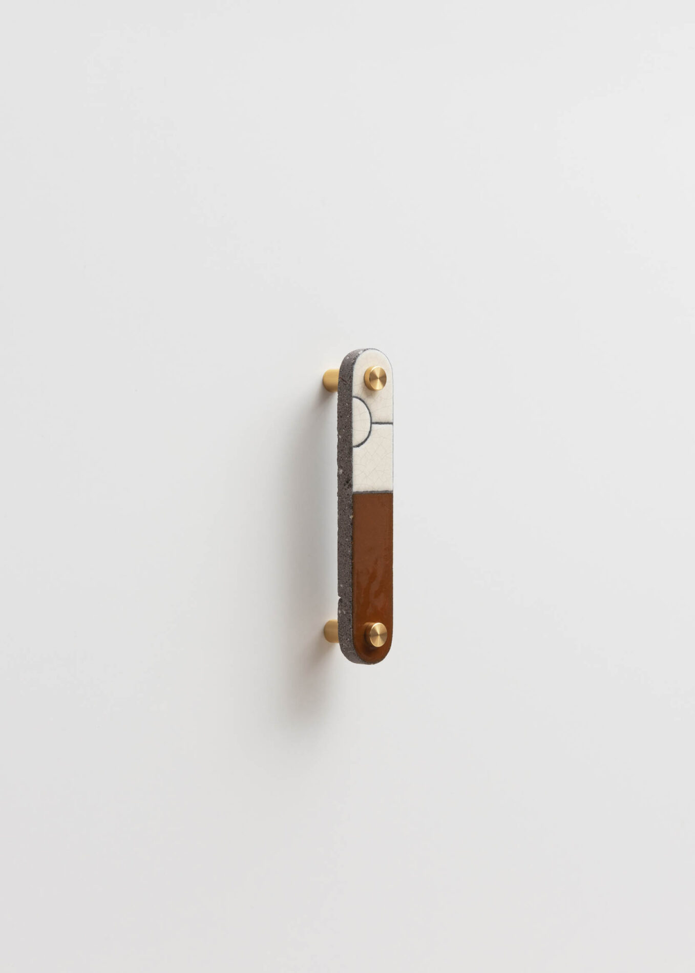 selon ses grains et bulles. Vient ensuite l’étape du débitage, qui lui donne sa forme définitive. Les couleurs sont développées spécifiquement pour chaque projet — comme pour les poignées réalisées pour Elliott Barnes Interiors,